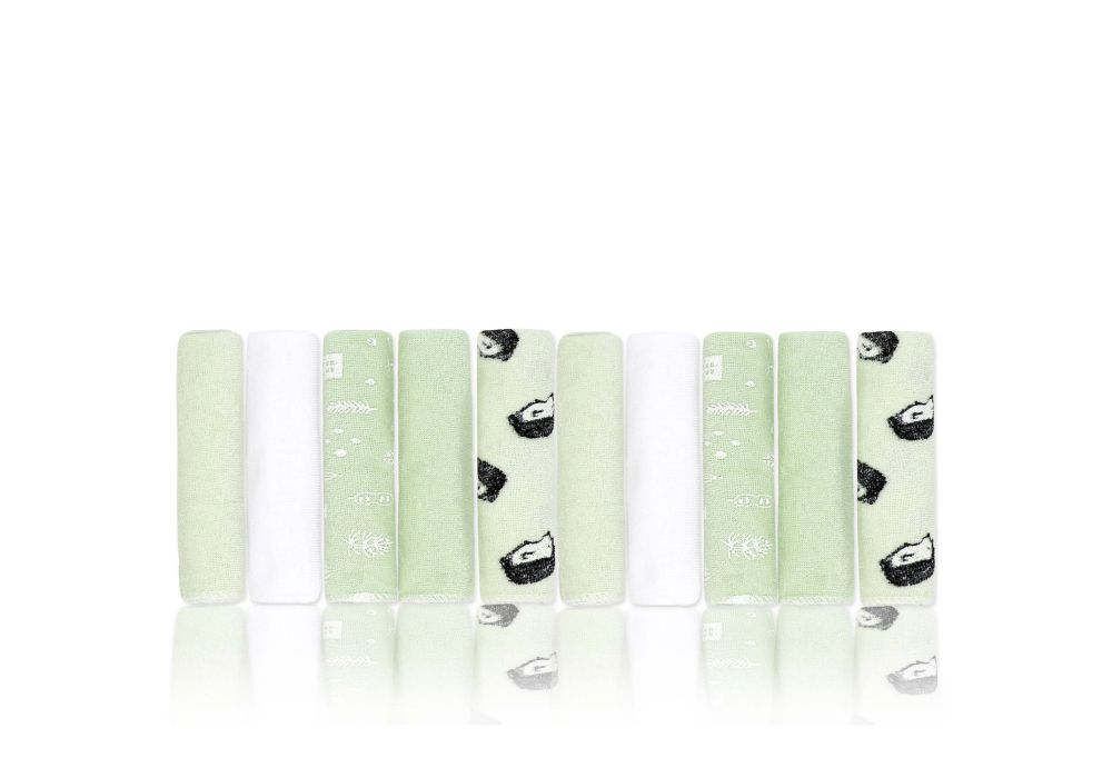 10 Pack Washcloths: Green Hedgehog