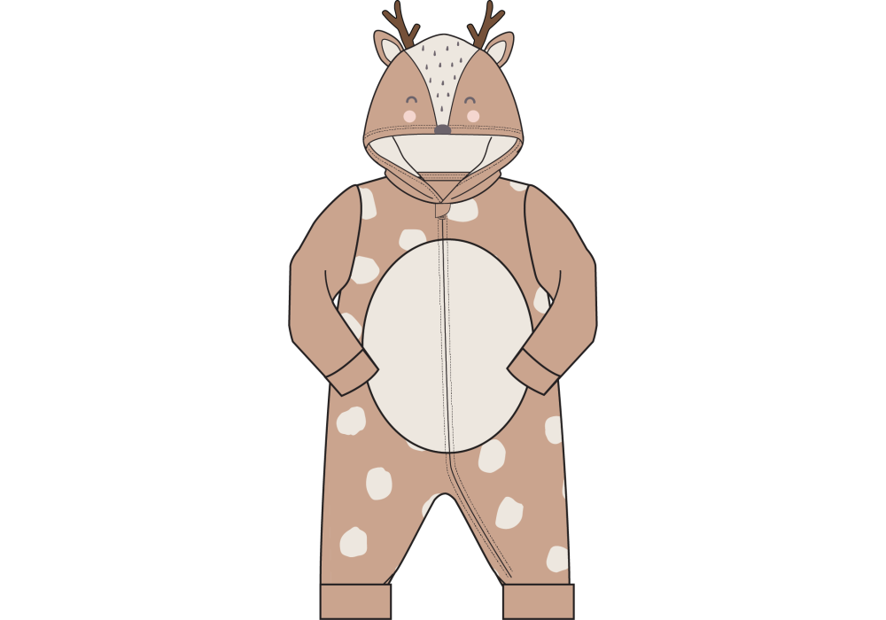 Hooded INF Flannel Fleece Pram: Tan Deer